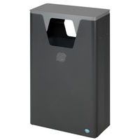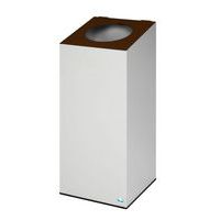 - Afvalbak voor afvalscheiding, brandwerende behuizing en kantelklep van mat rvs. Bovenkant van gegalvaniseerd plaatstaal in antiek zilver.