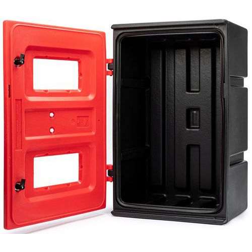 | Productnaam | Brandblusserkast, Materiaal: Polyethyleen, Kleur: Rood/zwart, Totale hoogte: 850 mm, Totale breedte: 565 mm |