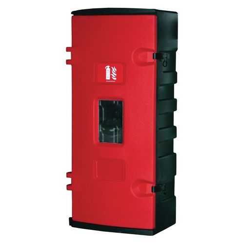 | Productnaam | Brandkast met opening aan voorzijde, Materiaal: Polyethyleen, Kleur: Rood/zwart, Voor blusser gewicht: 5 kg |