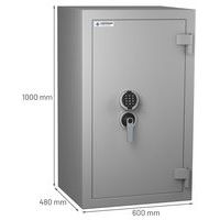 | Productnaam | Brandveilige kluis, Totale hoogte: 1000 mm, Totale breedte: 600 mm, Type sluiting: Met code |