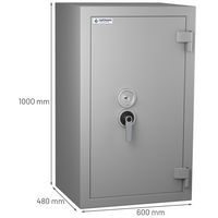 | Productnaam | Brandveilige kluis, Totale hoogte: 1000 mm, Totale breedte: 600 mm, Type sluiting: Met sleutel |