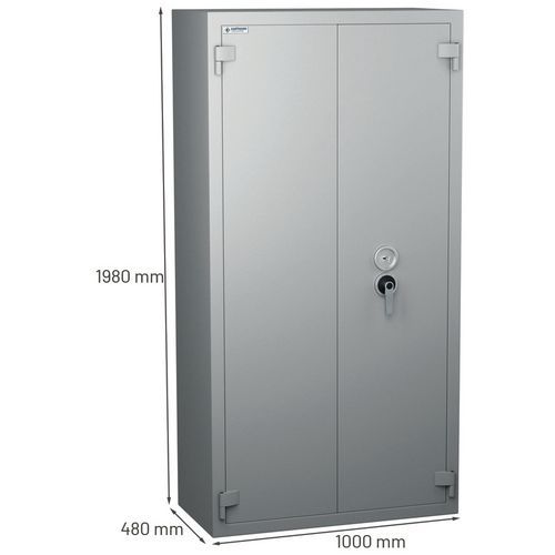 | Productnaam | Brandveilige kluis, Totale hoogte: 1980 mm, Totale breedte: 1000 mm, Type sluiting: Met sleutel |