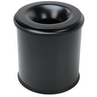 Metalen afvalbak uitgerust met een vlamdover. De vlammen kunnen zich zo niet verspreiden. Compact, veilig en praktisch.