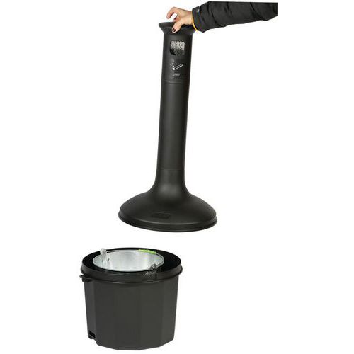 | Productnaam | Brandwerende asbak van kunststof, Asbak inhoud: 10 L, Kleur: Antraciet, Opening: Voorzijde |
