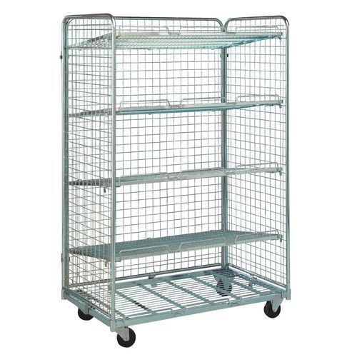 | Productnaam | Brede rolcontainer, Max. belasting: 400 kg, Totale hoogte: 1790 mm, Totale lengte: 1150 mm, Aantal zijden: 3 |