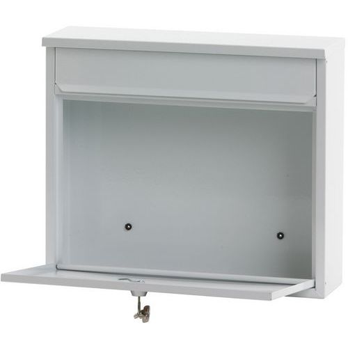 - Metalen muurbrievenbus met klep en afsluitbare toegangsdeur op de voorkant. Opening: 32 x 4 cm.