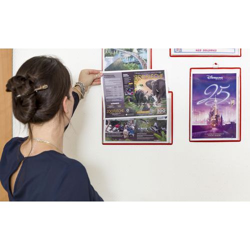 | Productnaam | Rode brochurehouder om op te hangen, Zelfklevend: nee, Materiaal: PVC, Hoogte: 25.2 cm |