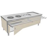- 3 GN1/3 polycarbonaat bestekbakken 150 mm diep (meegeleverd).