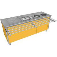- 3 GN1/3 polycarbonaat bestekbakken 150 mm diep (meegeleverd).