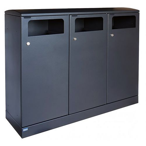 | Productnaam | Buitenafvalbak Bica 713 3x100 liter antraciet, Totale inhoud: 300 L, Opening: Voorzijde, Materiaal: Metaal |