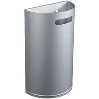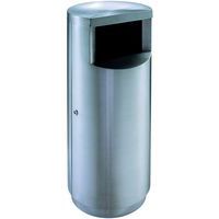 - Mooi vormgegeven ronde afvalbak van mat RVS met inworpopening aan de zijkant. Het afdak voorkomt inregenen. Voorzien van verzinkte binnenemmer die via de deur aan de voorzijde eenvoudig te legen is.