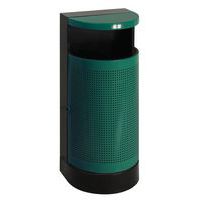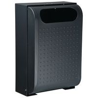 - Afvalbak voor buiten van gegoten kunststof en metaal, zeer goed bestand tegen slechte weersomstandigheden. De bovenkant beschermt tegen regen en voorkomt overbelasting als de bak vol is. Voorzien van een rvs plaat. Eenvoudige en hygiënische vervanging van de zak dankzij de vergrendeling met een driehoekige sleutel. Muur- of paalbevestiging.