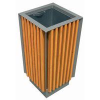 - Houten latten op het stalen frame geven deze afvalbak een rustiek uiterlijk.