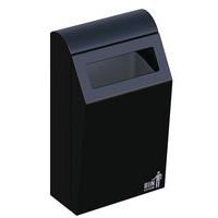 - Buitenafvalbak van UV-bestendig geïnjecteerd HDPE voor wand- of paalbevestiging. De kap beschermt tegen inregenen en voorkomt de inworp van volumineus afval. Voorzien van asbak op de top. Na het ontgrendelen via een driekantslot kan de afvalbak via de voorzijde volledig uitgenomen worden. De extra handgreep aan de voorzijde vergemakkelijkt het ledigen. De geribbelde stijllijnen maken het aanbrengen van graffiti moeilijk.
