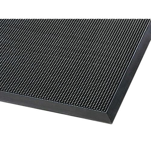 Deze buitenmat heeft noppen om onder schoenen te krabben en afgeschuinde randen voor een ingang zonder kuil.