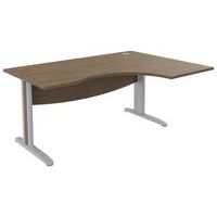 Spaanplaat, dikte 25 mm, multiplex randen. Metalen poten in L-vorm met kabeldoorgang onder afneembare houten latjes. Onderstel met stelpoten. Blad met een hoogte van 72 cm, met kabeldoorgang met afsluiter en frontpaneel. Retour diepte 120 cm. Aan te vullen met een verstevigingspoot, een uitbreidingsblad met poten of een ladeblok op bureauhoogte, afzonderlijk verkrijgbaar. Monteerklaar geleverd met handleiding