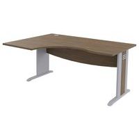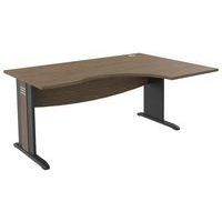 Constructie van spaanplaat, gemelamineerd. Houten L-poten met houten inzetstuk en aluminium zeefdruk. Onderstel met stelpoten. Retour diepte 120 cm links of rechts. Aan te vullen met een verstevigingspoot, een uitbreidingsblad met poten of een ladeblok op bureauhoogte, afzonderlijk verkrijgbaar. Monteerklaar geleverd met handleiding