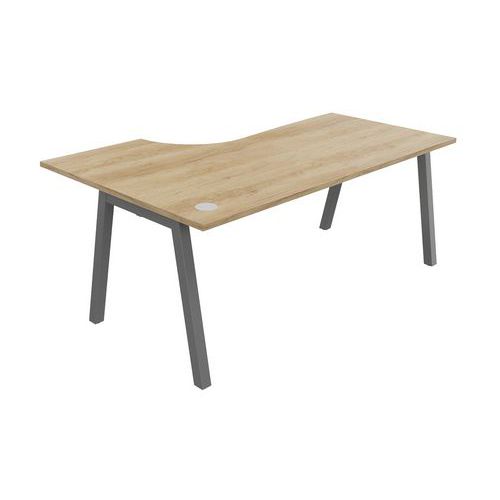 Gemelamineerd blad met een dikte van 30 mm en schokvaste ABS-randafwerking (dikte 2 mm), voor een lange levensduur. 25 mm uitgerust met een kabeldoorgang Schokbestendige ABS-rand 2 mm Metalen onderstel van boog bestaande uit vierkante poten met een doorsnede van 50 x 50 mm, met epoxygelakt afwerking. Stabilisatiecilinders ter compensatie van vervormingen in de ondergrond (hoogteafstelling 10 mm)