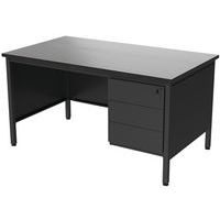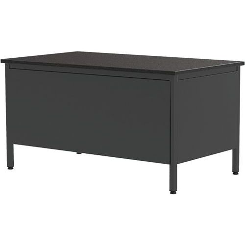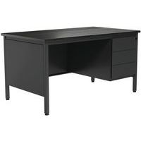 Bureau met aan 1 kant een ladeblok met 3 laden uit de lijn Confort 2. Vierkante buispoten 35x35x2 mm met versteviging van metaal in de hoeken. Verstelbare poten met synthetische schroeven. Stevige metalen constructie van 1,5 mm plaatstaal. De metalen delen hebben een epoxy-polyester poedercoating. Vaste bureauhoogte: standaardhoogte van 75 cm (incl. toplaag van 25 mm).