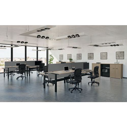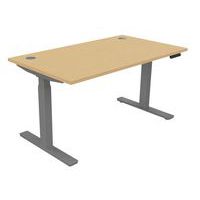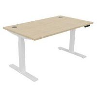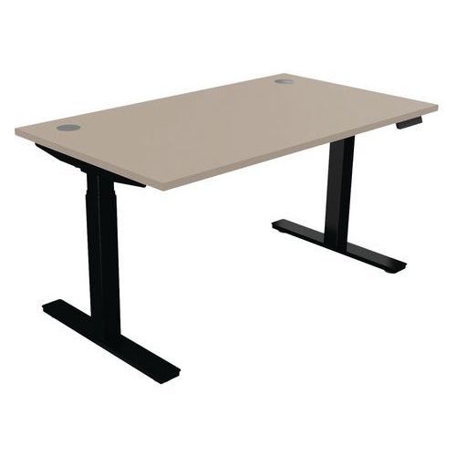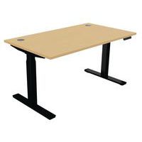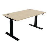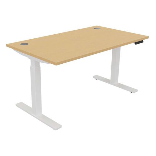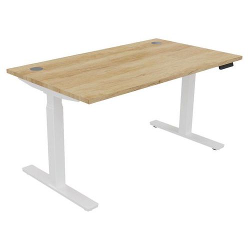 Gemelamineerde bladen met een dikte van 25 mm, met schokbestendige ABS-randen van 2 mm. 2 kabeldoorgangen Ø 80 mm. Metalen buisconstructie, doorsnede 70 x 70 mm, mechanisch in hoogte verstelbaar van 65 tot 130 cm. Gemotoriseerd systeem voor hoogteregeling, bediening voor instelling via regeleenheid omhoog/omlaag en 4 gememoriseerde standen. Maximale belasting 100 kg/per blad. Stelpoten onder het onderstel, voor instelling van de niveaus