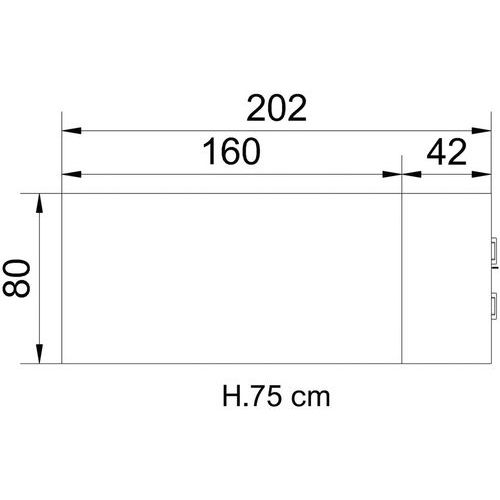Werkblad van spaanplaat met een dikte van 25 mm, aan twee zijden bekleed met decoratief, met hars geïmpregneerd papier dat krasbestendig, antireflecterend en wasbaar is. Rechte schokbestendige randen van 2 mm dik ABS op de 4 zijden van het blad. Dichtheid van het blad: 670/730 kg/m3. Poten en balk van met epoxypoederlak gelakt plaatstaal.