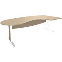 Constructie van spaanplaat, gemelamineerd. Blad hoogte 72 cm. Onderstel met houten basis en oppervlak met stelpoten. Retour van blad diepte 110 cm (120 cm totaal) aan te vullen met 1 verstevigingspoot of 1 ladeblok op bureauhoogte. Totale L/B/D blad: 200 x 120 x 60 cm. Monteerklaar geleverd met handleiding