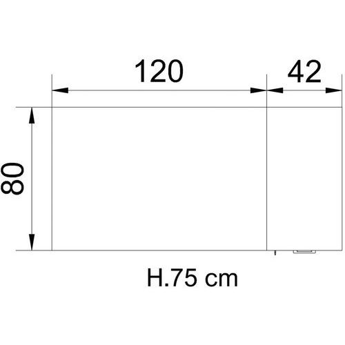 Werkblad van spaanplaat met een dikte van 25 mm, aan twee zijden bekleed met decoratief, met hars geïmpregneerd papier dat krasbestendig, antireflecterend en wasbaar is. Rechte schokbestendige randen van 2 mm dik ABS op de 4 zijden van het blad. Dichtheid van het blad: 670/730 kg/m3. Poten en balk van met epoxypoederlak gelakt plaatstaal.