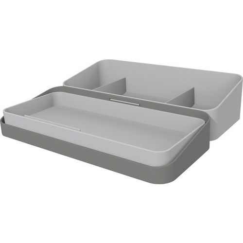 Bureau organizer the companion, Materiaal: Polystyreen, Aantal vakken: 4, Kleur: Lichtgrijs, Hoogte: 5.6 cm