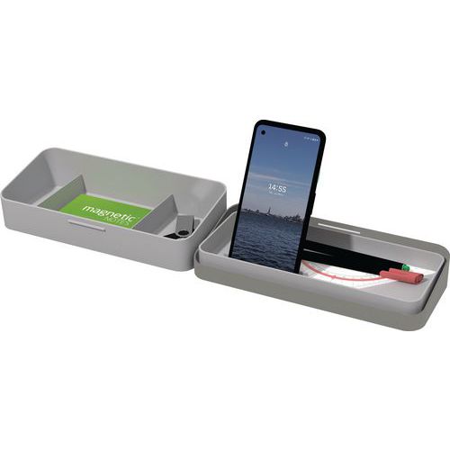 - Onderste deel met penhouder en drie vakken van verschillende grootte voor bijvoorbeeld plakbriefjes en kleine onderdelen.