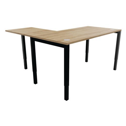 Recht bureau Astro Arche + uitbreiding met onderstel van metaal voor extra stevigheid Bureaublad met afsluiter Ø 80 mm voor de kabeldoorvoer Geretourneerd door 80 x 60 cm rechts of links te plaatsen Metalen boogpoten met epoxy-afwerking van 50 x 50 mm in hoogte verstelbaar Plateau met paneel van houtdeeltjes met een hoge dichtheid, dikte 25 mm, gemelamineerd bekleed. Glijders met stelpoten. Monteerklaar geleverd met handleiding