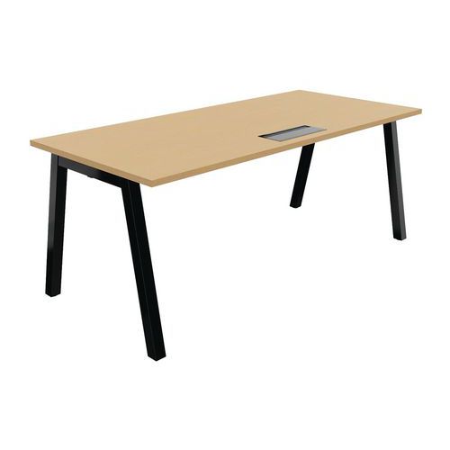 Gemelamineerd blad met een dikte van 30 mm en schokvaste ABS-randafwerking (dikte 2 mm), voor een lange levensduur. 25 mm, uitgerust met Top access, afwerking in dezelfde kleuren als het onderstel Schokbestendige ABS-rand 2 mm Metalen onderstel van boog bestaande uit vierkante poten met een doorsnede van 50 x 50 mm, met epoxygelakt afwerking. Stabilisatiecilinders ter compensatie van vervormingen in de ondergrond (hoogteafstelling 10 mm)