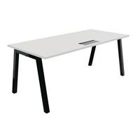 Gemelamineerd blad met een dikte van 30 mm en schokvaste ABS-randafwerking (dikte 2 mm), voor een lange levensduur. 25 mm, uitgerust met Top access, afwerking in dezelfde kleuren als het onderstel Schokbestendige ABS-rand 2 mm Metalen onderstel van boog bestaande uit vierkante poten met een doorsnede van 50 x 50 mm, met epoxygelakt afwerking. Stabilisatiecilinders ter compensatie van vervormingen in de ondergrond (hoogteafstelling 10 mm)