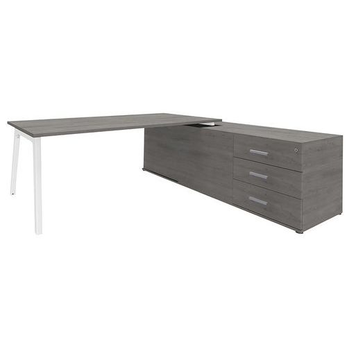 Bladhoogte 72,5 cm van gemelamineerd spaanplaat met een hoge dichtheid, dikte van 25 mm, ABS-randen dikte 2 mm. Stalen onderstel met boog met verflaag, met afneembare behuizingen voor kabeldoorgang. 2 kleuren: licht eiken/witte poten of eiken/carbon poten. Schokbestendige ABS-randen, dikte 2 mm. Console geleverd met 2 laden waarvan 1 voor hangmappen + 1 ladeset om deze om te bouwen tot 3 opbergladen.