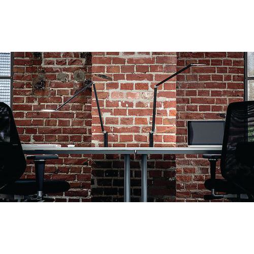 Led-bureaulamp in een zeer slank ontwerp met een elegante zwenkarm van aluminium met 2 elementen en onzichtbare kabeldoorgang. Sokkel in de vorm van een klem. Vermogen van 4000 K Gemaakt in Duitsland