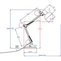 | Productnaam | Bureaulamp Calypsa, Max. vermogen: 40 W, Kleur: Wit, Arm kleur: Wit, Draagarm lengte: 75 cm, Hoogte: 57 cm |