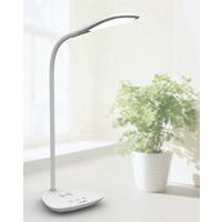 Bureaulamp met inductiebasis om uw telefoon draadloos op te laden.