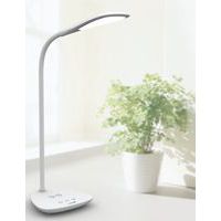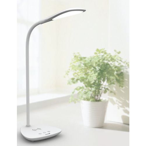 Bureaulamp met inductiebasis om uw telefoon draadloos op te laden.