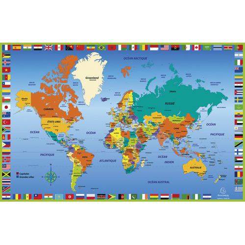 | Productnaam | Bureauonderlegger kaart van wereld , Materiaal: PVC, Kleur: Bont gekleurd, Lengte: 575 mm, Breedte: 375 mm |
