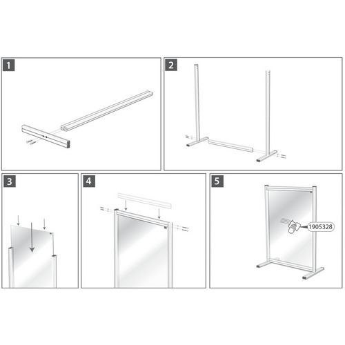 | Productnaam | Bureau Veiligheidsscherm modulair Premium Plus transparant acryl Nobo, Totale breedte: 1200 mm |