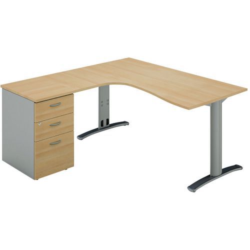 | Productnaam | Bureauset asymmetrisch met zijblad links + ladeblok HB Dalia, Type onderstel: T-poot, Totale hoogte: 72.5 cm |