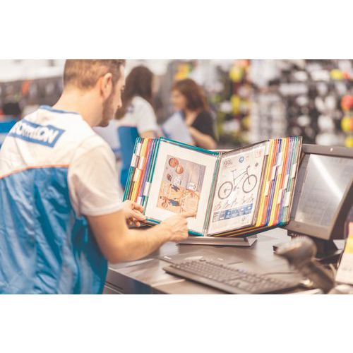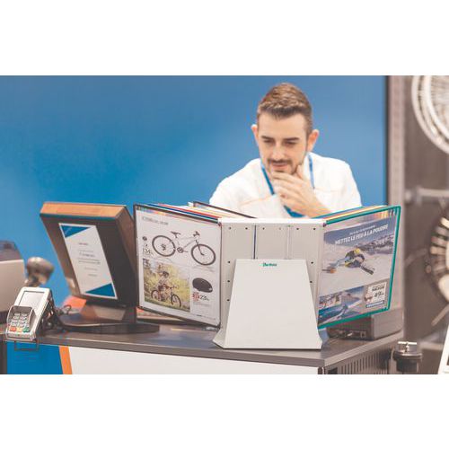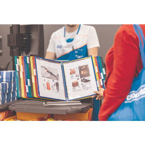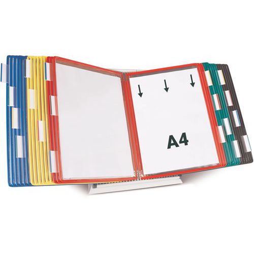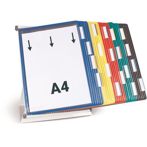 Bureaustandaard Tarifold met hoezen voor A4-formaat, Steun materiaal: Staal, Kleur: Diverse, Breedte: 30 cm Bureaustandaard Tarifold met hoezen voor A4-formaat, Steun materiaal: Staal, Kleur: Diverse, Breedte: 30 cm