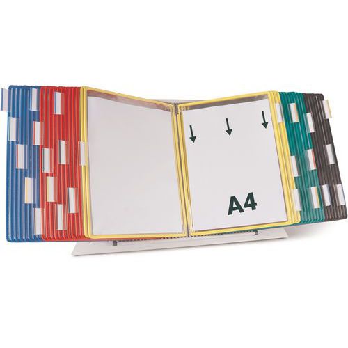 Bureaustandaard Tarifold met hoezen voor A4-formaat, Steun materiaal: Staal, Kleur: Diverse, Breedte: 52.5 cm Bureaustandaard Tarifold met hoezen voor A4-formaat, Steun materiaal: Staal, Kleur: Diverse, Breedte: 52.5 cm