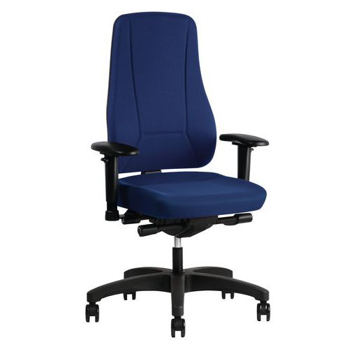 - Inclusief in hoogte, breedte en diepte verstelbare armleuningen. Bureaustoel met synchroonmechanisme, instelling op het gewicht van de gebruiker en instelling van de hoek en de diepte van de zitting.