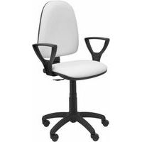 Bureaustoel Ayna imitatieleer met vaste arm - Piqueras y crespo. In hoogte verstelbaar met gascilinder. Mechanisme voor permanent contact waarmee de rugleuning in hoogte, diepte en hellingshoek kan worden versteld. De zitting en rugleuning zijn bekleed in de stof en kleur van uw keuze. Basis van zeer sterk polyamide met 5 spaken en een diameter van 55 cm. Nylon wielen, 360° zwenkbaar en zwart telescopisch.
