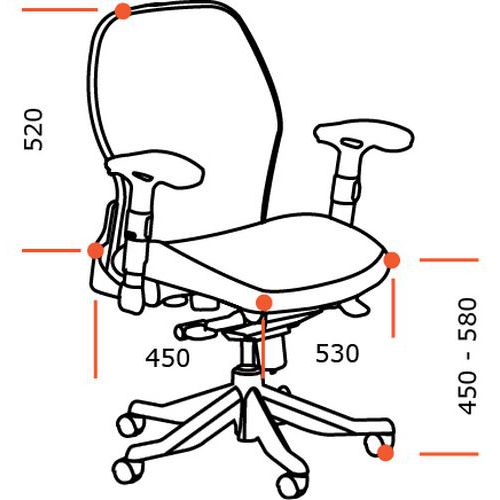 De Dali bureaustoel onderscheidt zich vooral door de eenvoudige constructie. De stoel is geschikt voor gebruik met een pc: thuis, op kantoor of op school. Met permanent contactmechanisme. Verstelbare hoogte van rugleuning en zitting.