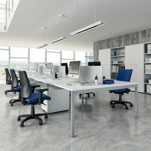 Lage rugleuning en zitting bekleed met stof voor optimaal comfort en ergonomische ondersteuning. Hoogwaardige ecolederen bekleding met strakke lijnen, past perfect bij elke kantoorstijl. Bevordert een juiste houding en vermindert vermoeidheid.