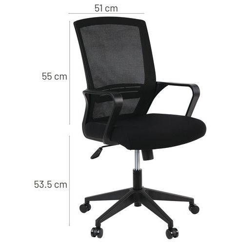 | Productnaam | Bureaustoel zwart Elane, Met armleggers: ja, Type voet: Wielen, Zitting materiaal: Stof, Hoofdsteun: nee |