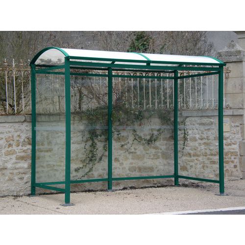Verkrijgbaar met of zonder bank Eenvoudig ontwerp Bouw: Stalen buispalen 60 x 60 mm Dwarsbalk aluminiumprofiel Corrosiewerende schroeven Dekking: Anti-UV opaalmethacrylaat geknepen tussen bogen gelakt aluminium profiel Afwerking Thermohardende polyesterverf gebakken op 200°C, ongevoelig voor UV Aankleden Gehard glas sécurit helder dikte 8 mm Bevestiging niet meegeleverd: Gebruik M12/65 ankerschroeven op betonplaat of betonblokken Gebruik M12/120 draadstangen op schoon, vlak asfalt. Andere RAL's beschikbaar op aanvraag, voor aanpassing Gemaakt in de EU Klantgarantie : 10 jaar