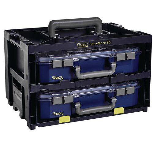 | Productnaam | CarryMore 80 Black leeg, Waterdicht: nee, Lean Management: ja, Totale hoogte: 241 mm, Totale breedte: 263 mm |