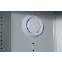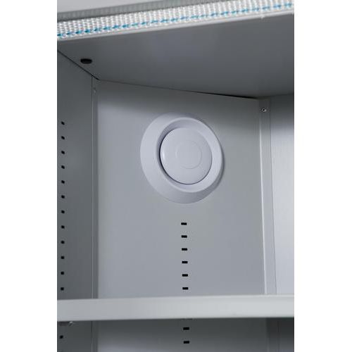 Ventilatie wordt verzorgd door plaatkleppen aan de boven- en onderkant van de linker binnenhoek van de kast, de kleppen zijn verbonden met een ingebouwd verticaal ventilatiekanaal (Ø 105mm).